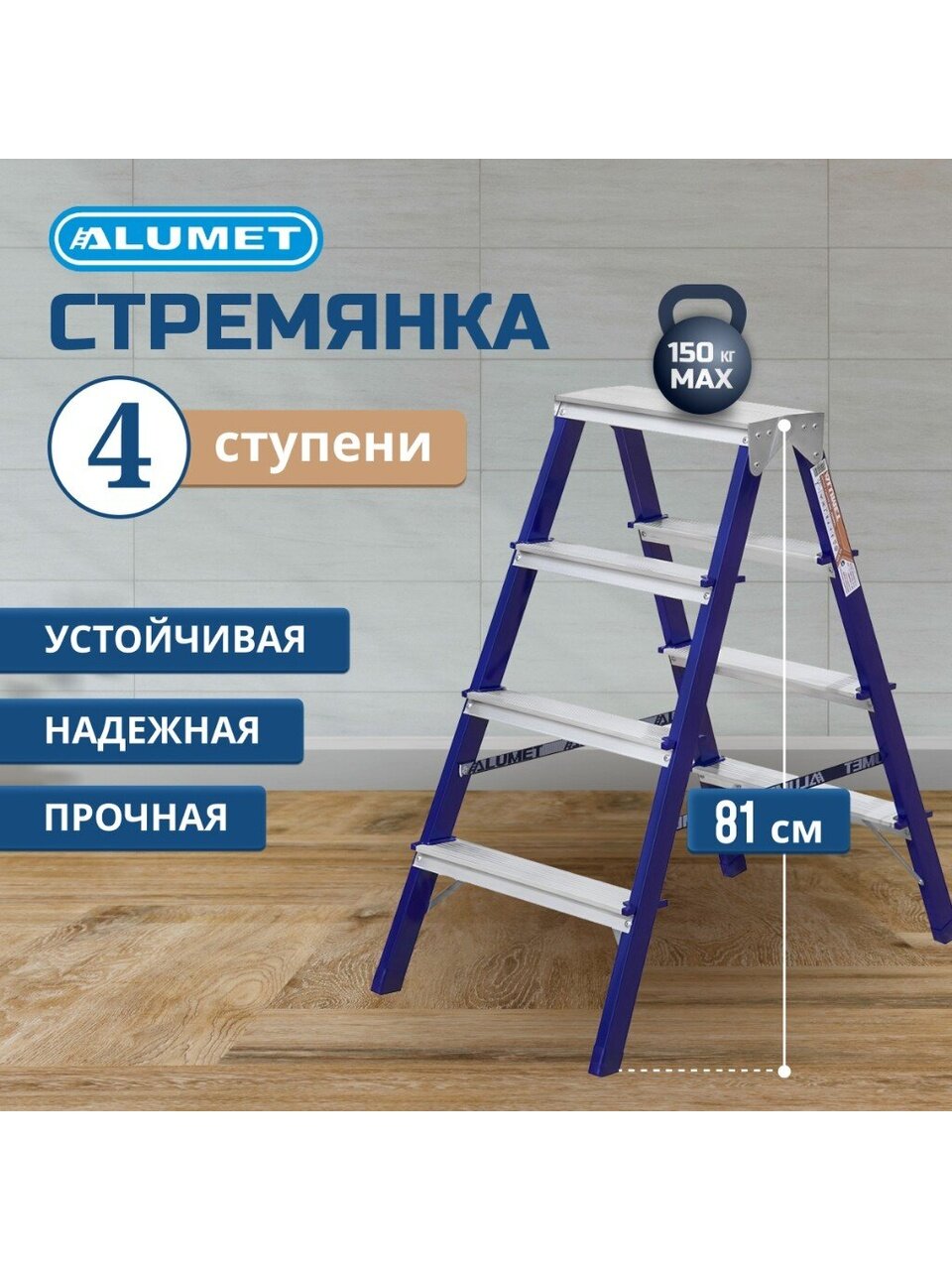 Вы можете приобрести «Стремянка 2 секции, 4 ступени, сталь, 0.81 м, 150 кг, двусторонняя, Alumet, MD8204» и другие товары в нашем интернет-магазине в Брянске по низким ценам и с бесплатным самовывозом.