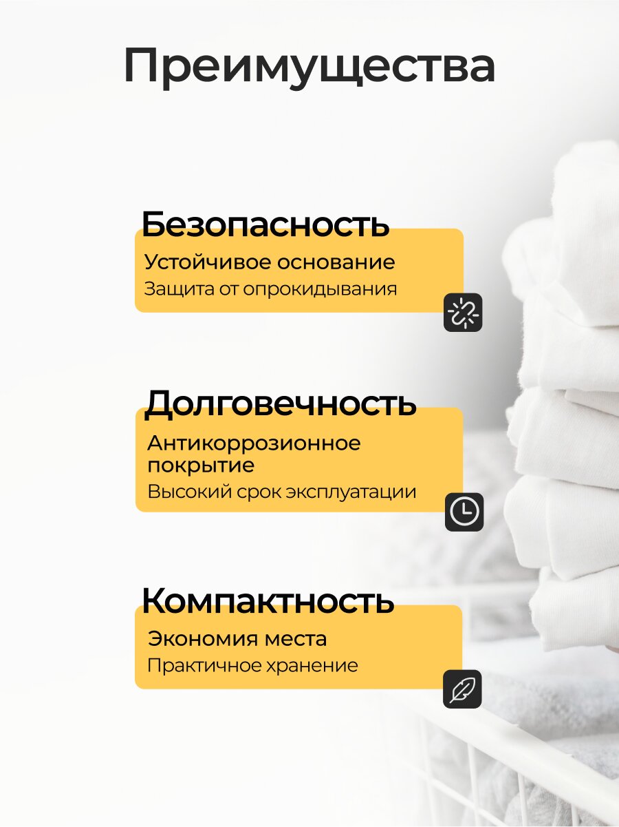 На двух уровнях общей длиной 16 метров удобно разместить до двух стандартных стирок (до 15 кг белья), включая постельное и крупные полотенца.