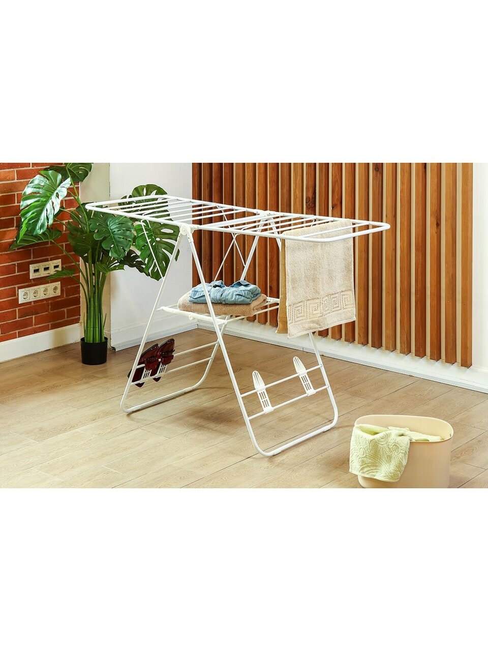 Часто спрашивают, чем отличается эта модель от аналогов: здесь нет механизма гармошки, зато есть створки и две независимые секции, что удобно для деликатной сушки или развешивания крупных вещей. Если вы ищете, как выбрать напольную сушилку для белья по размеру, обратите внимание на параметры: 146х60х95 см — оптимально для стандартных и больших помещений. Подходит ли для дачи? Да, конструкция устойчива, легко складывается и транспортируется, а металлические перекладины выдерживают частую эксплуатацию.
