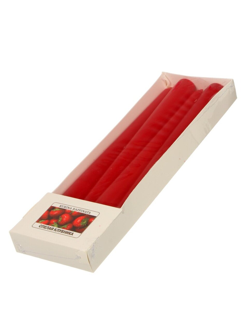 Свечи ароматические Kukina Raffinata "Спелая клубника" — 4 шт, 25,5 см: создайте атмосферу уюта и свежести ягод в доме или на даче, выгодная цена.