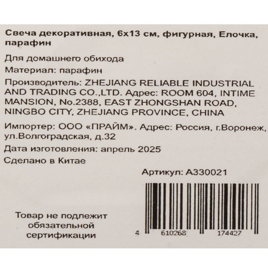 Закажите свечу Елочка 6х13 см прямо сейчас — получите гарантированное качество, выгодную цену и быструю доставку для вашего идеального праздника.