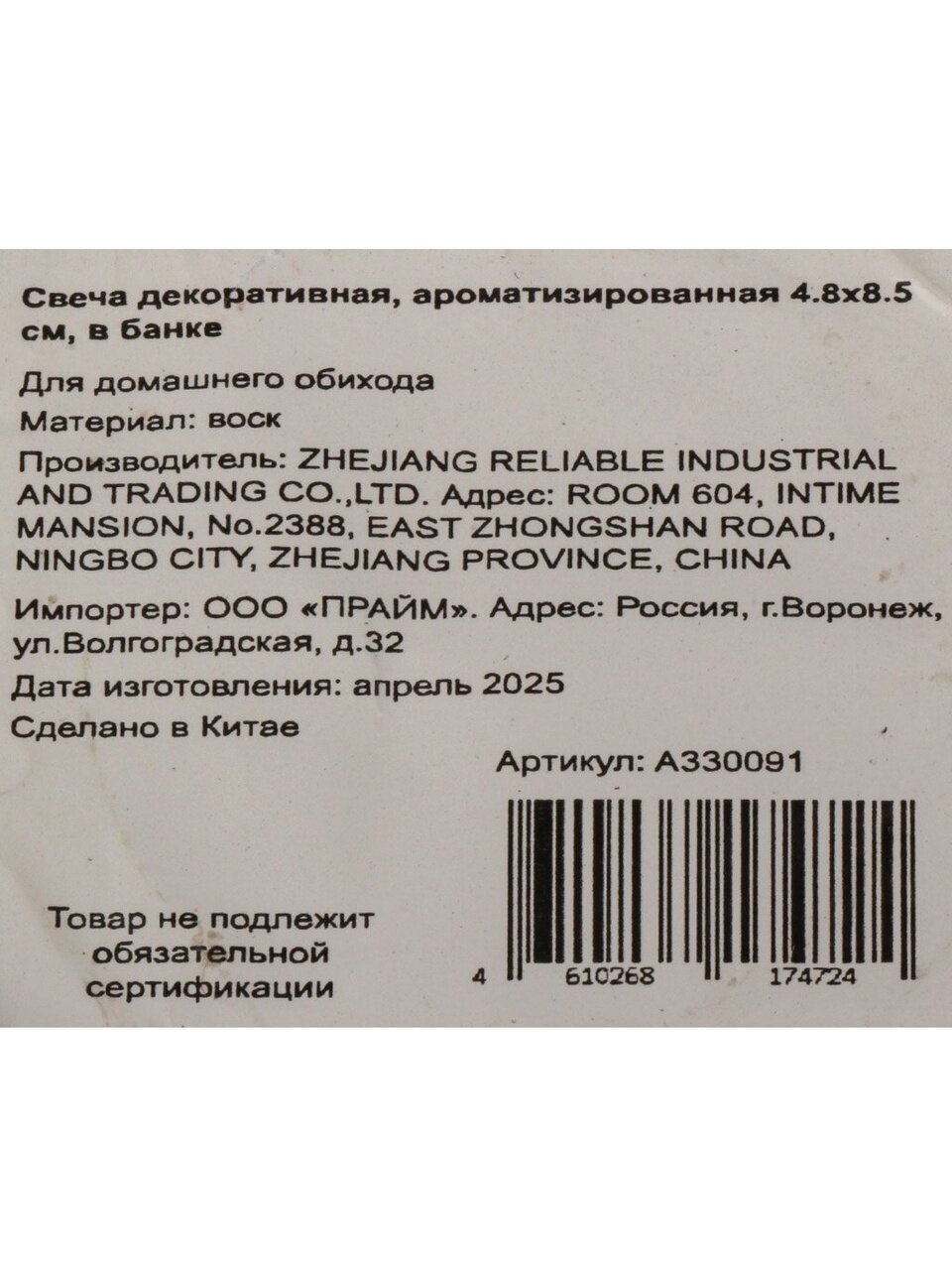 Вы можете приобрести «Свеча декоративная, 8.5х4.8 см, ароматизированная, в банке, A330091» и другие товары в нашем интернет-магазине в Ставрополе по низким ценам и с бесплатным самовывозом.