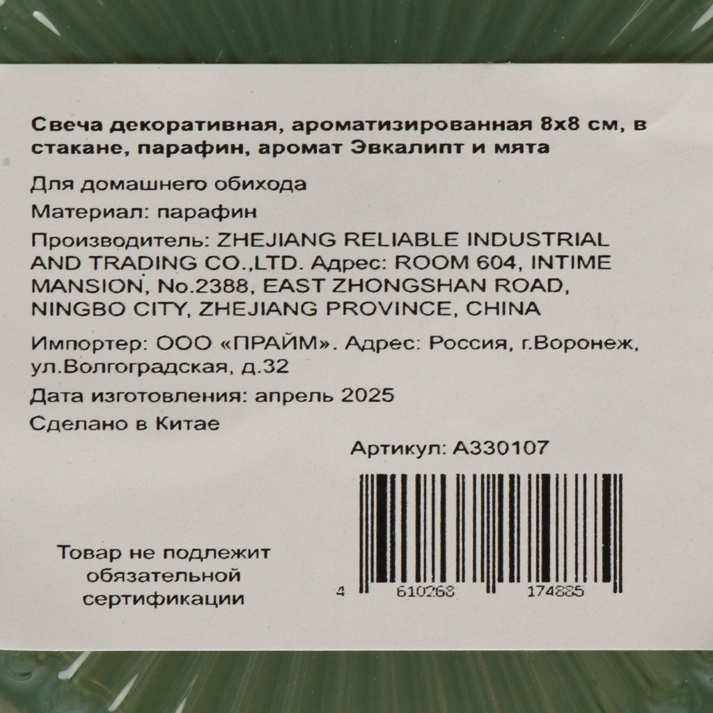 Свеча декоративная 8х8 см с ароматом эвкалипта и мяты — стильный акцент для интерьера, расслабление и свежесть в доме по выгодной цене.