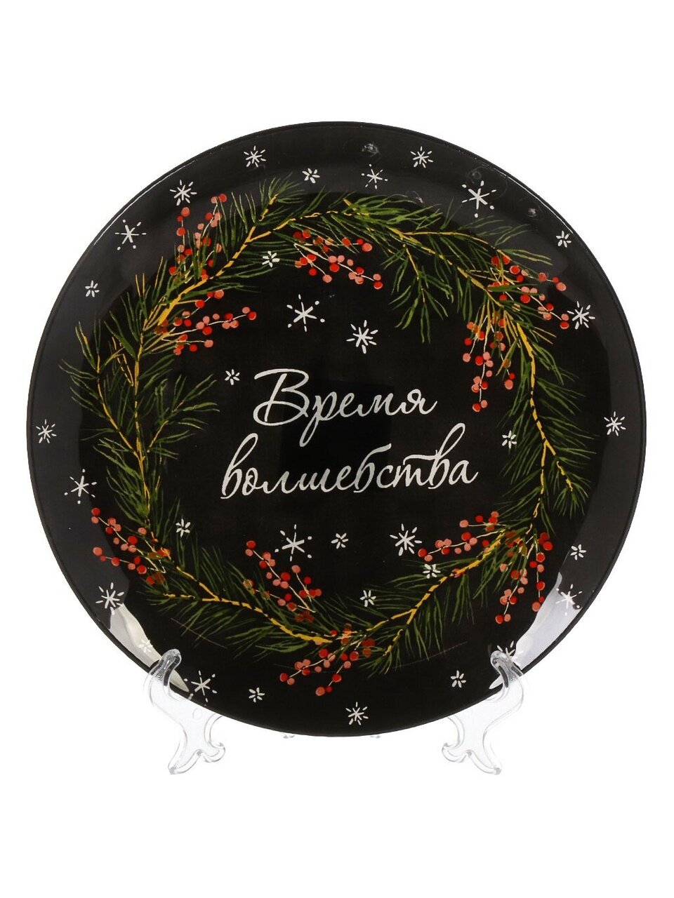Тарелка обеденная Daniks "Время волшебства" 23 см — стильное стекло с новогодним орнаментом для праздничной сервировки и ежедневного использования.