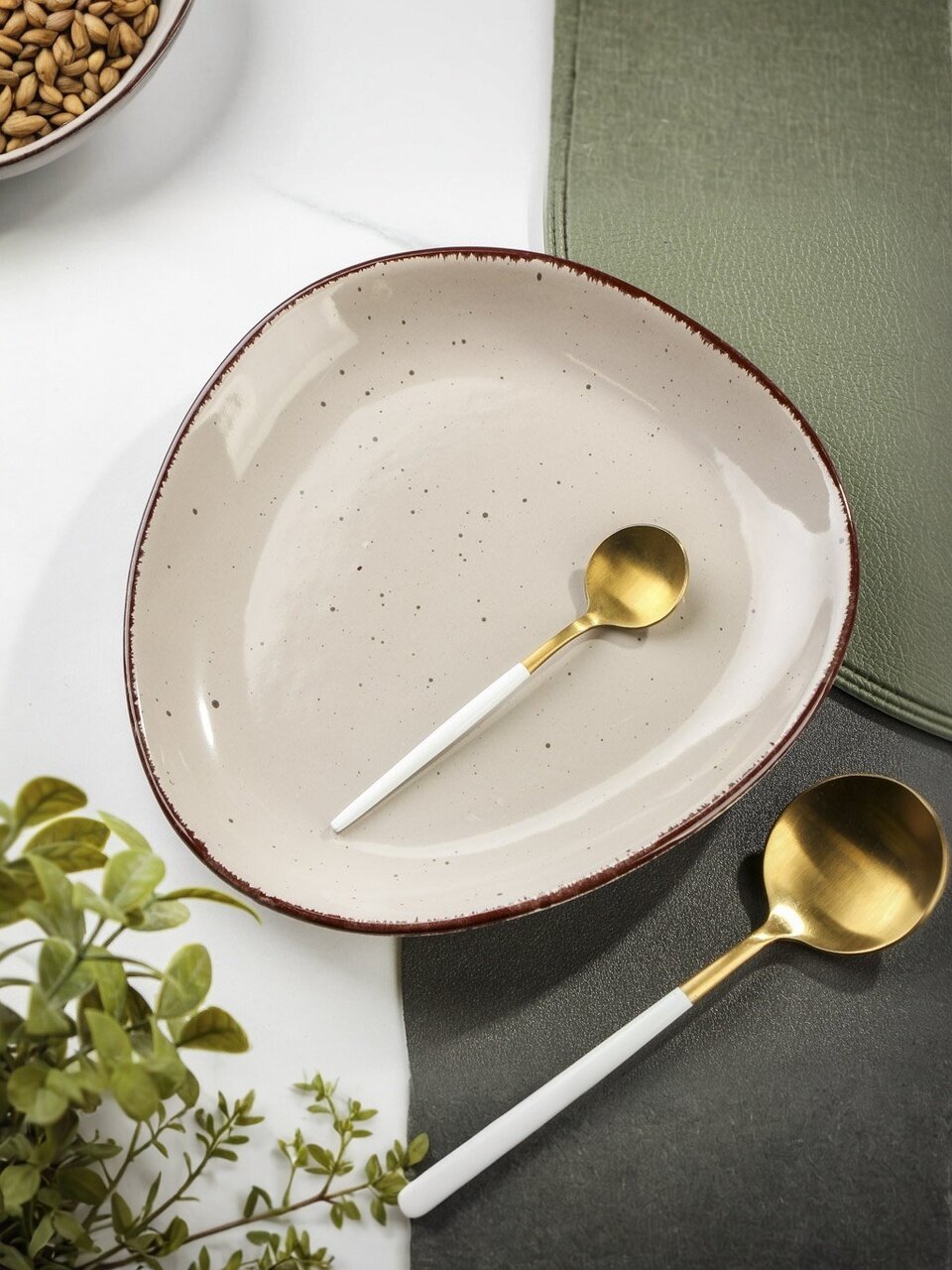 - Уникальный дизайн: фигурная форма и трендовый цвет капучино выделяют сервировку