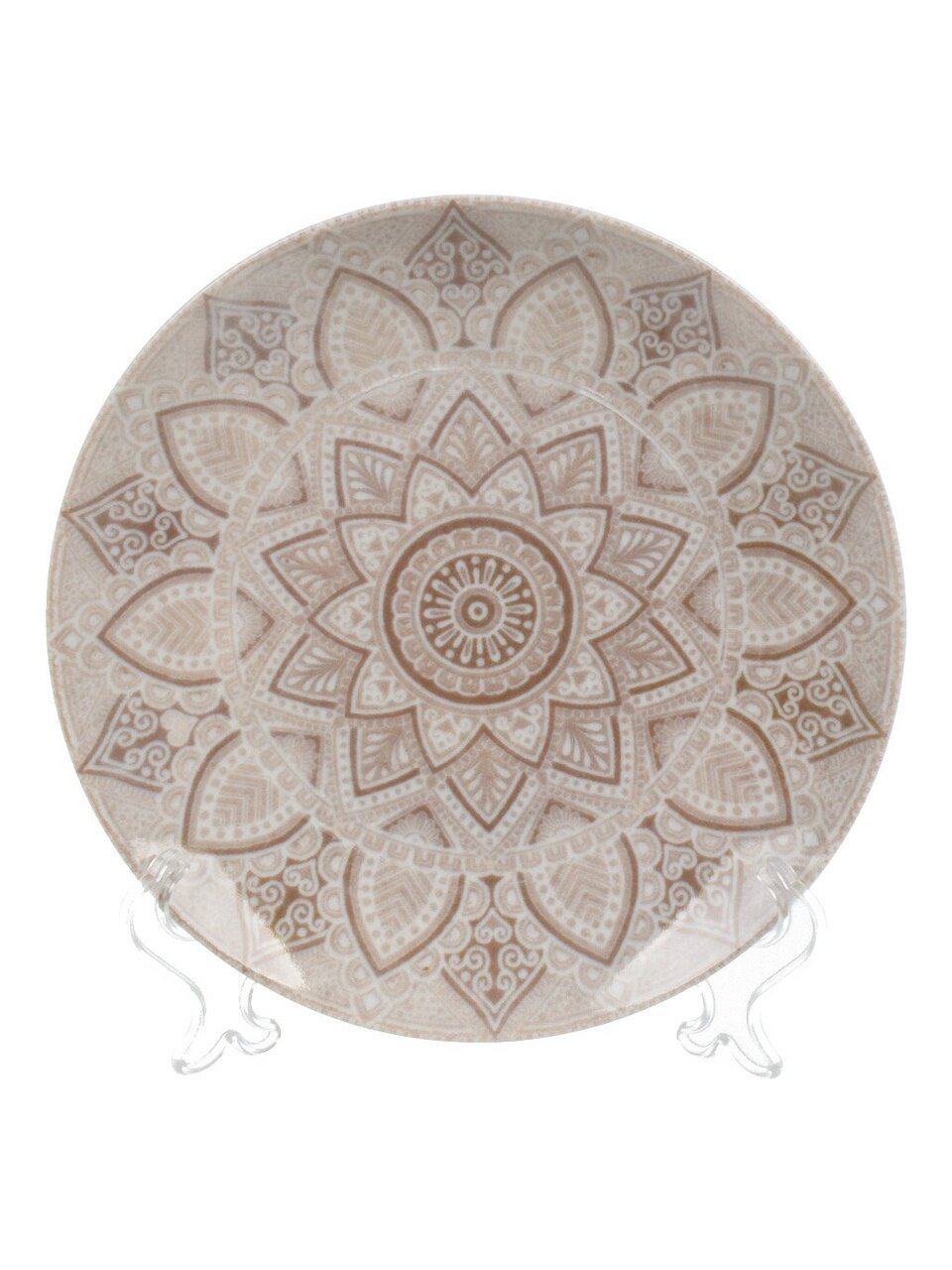 Диаметр — 17,5 см, форма — круглая, материал — фарфор с декоративным узором; рассчитана на подачу десертов и закусок.
