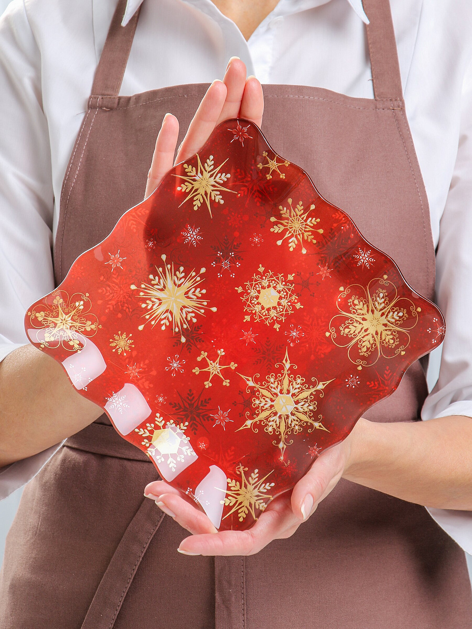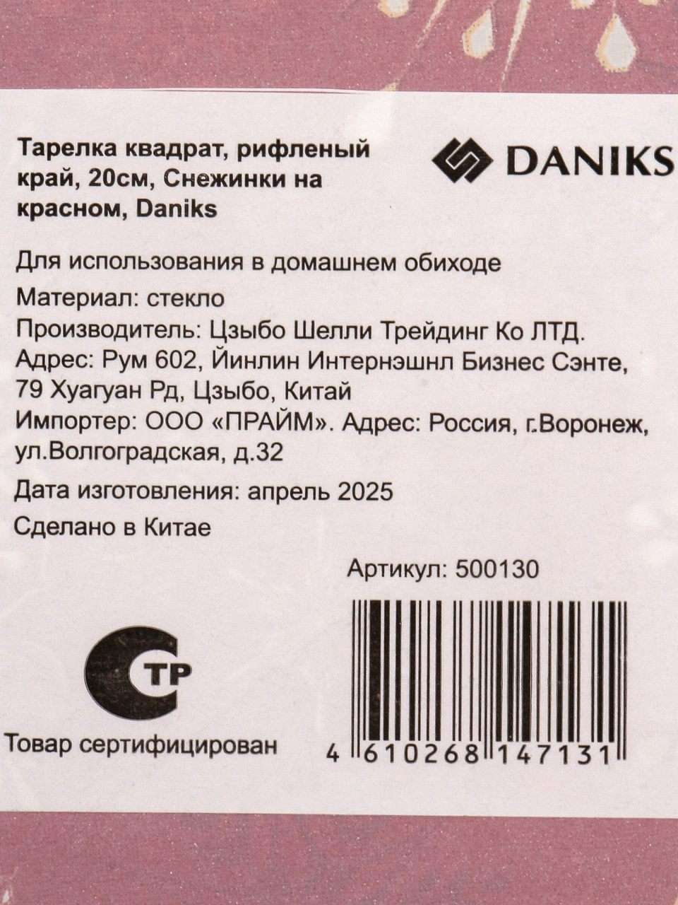 Вы можете приобрести «Тарелка стекло, 20 см, квадрат, рифлен, Снежинки на красном, Daniks» и другие товары в нашем интернет-магазине в Ельце по низким ценам и с бесплатным самовывозом.