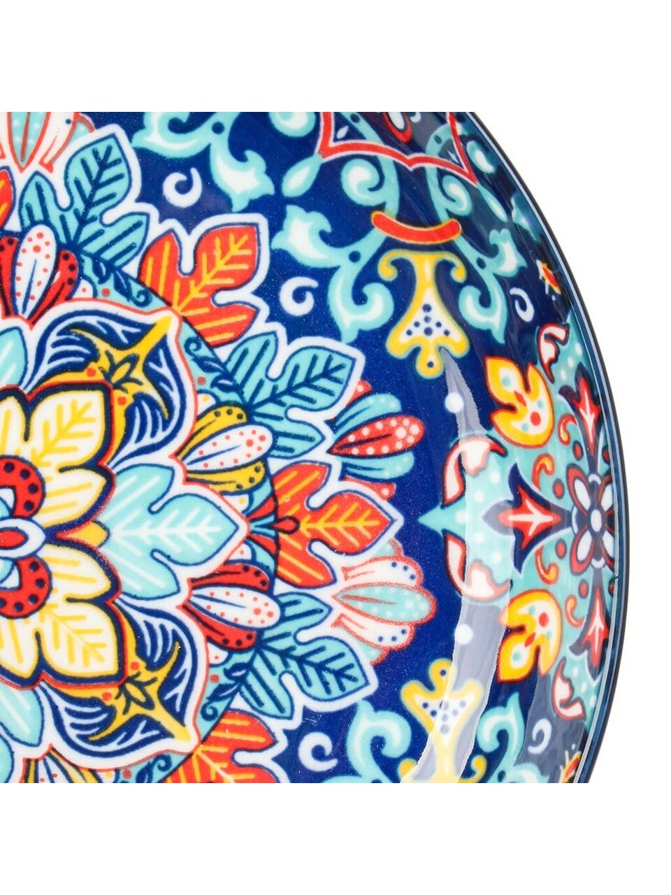 Обеденная тарелка из керамики диаметром 20 см — это не просто посуда, а элемент декора, который добавит изысканности вашей сервировке. Благодаря прочному керамическому материалу изделие устойчиво к сколам, подходит для ежедневного использования и легко очищается как вручную, так и в посудомоечной машине. Восточный орнамент в синей гамме делает тарелку ярким акцентом на любом столе, а универсальная форма идеально подойдёт для подачи горячих блюд, салатов или закусок.
