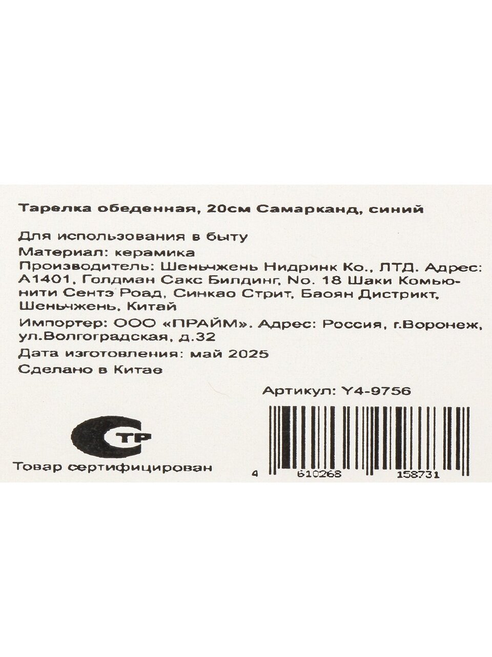 Вы можете приобрести «Тарелка обеденная, керамика, 20 см, Самарканд, Y4-9756, синяя» и другие товары в нашем интернет-магазине в Таганроге по низким ценам и с бесплатным самовывозом.