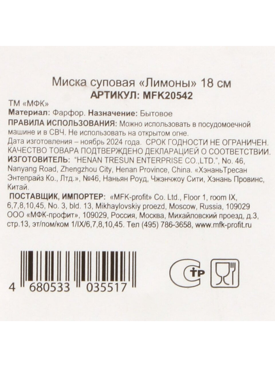 Вы можете приобрести «Тарелка суповая, фарфор, 18 см, Лимоны, МФК, MFK20542» и другие товары в нашем интернет-магазине в Старом Осколе по низким ценам и с бесплатным самовывозом.