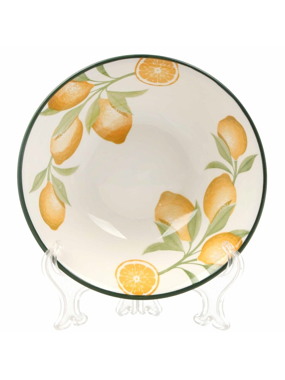 Тарелка суповая фарфоровая 18 см «Лимоны» МФК — яркий акцент на вашем столе: прочный фарфор, подходит для СВЧ и посудомойки, идеальный выбор для дома и дачи.