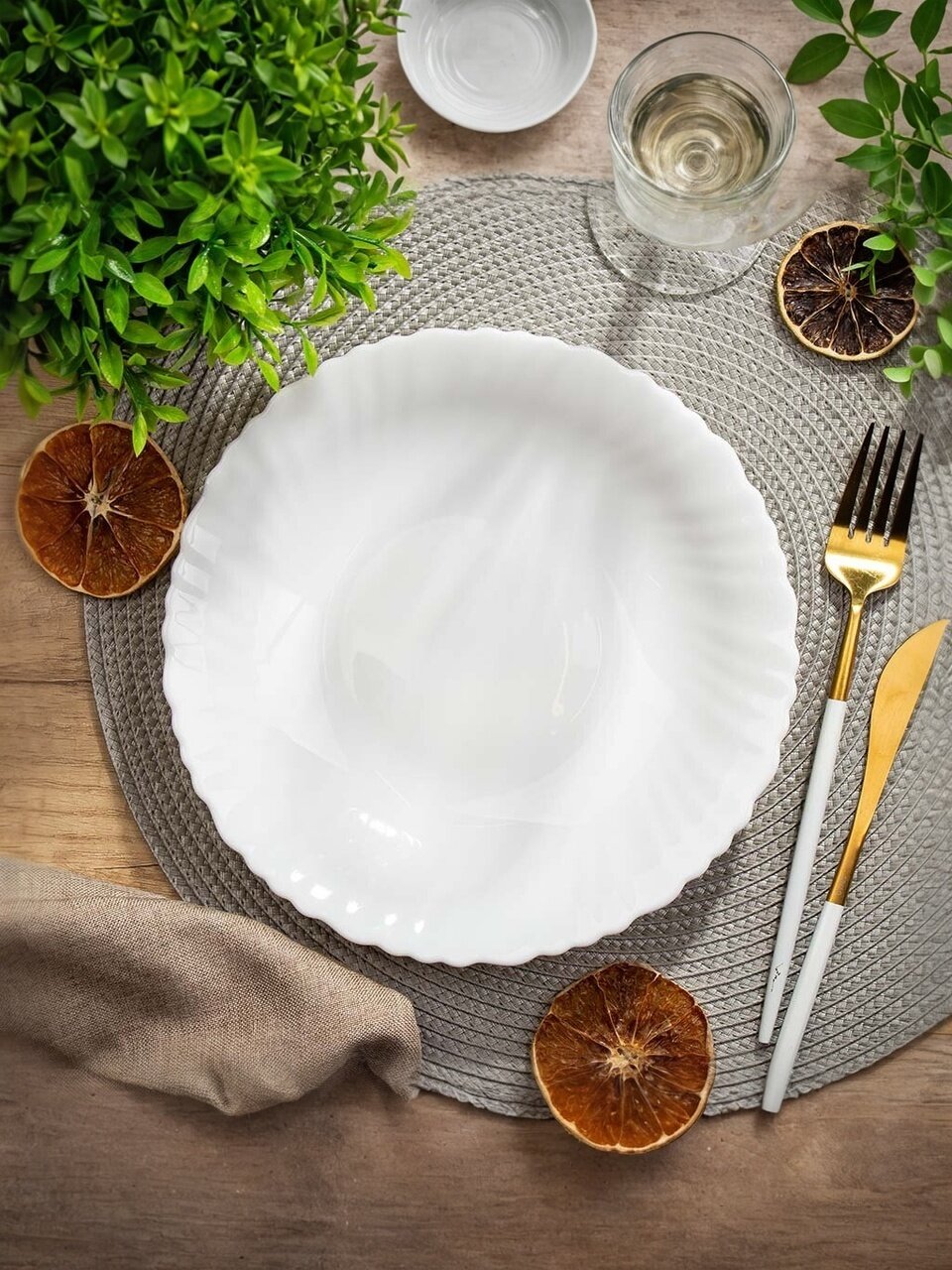 В отличие от аналогов из тонкого стекла или пластика, стеклокерамика Daniks дольше сохраняет тепло блюда и не впитывает запахи. Многие интересуются, подходит ли эта тарелка для микроволновки и посудомоечной машины — да, материал выдерживает нагрев и регулярную мойку без потери внешнего вида. Белая круглая форма делает её универсальной для подачи супа, пасты или даже десертов.