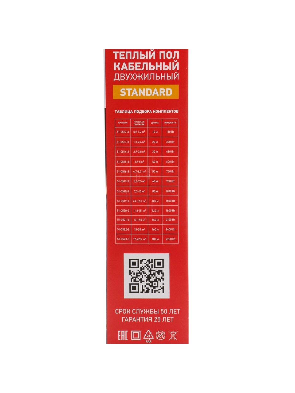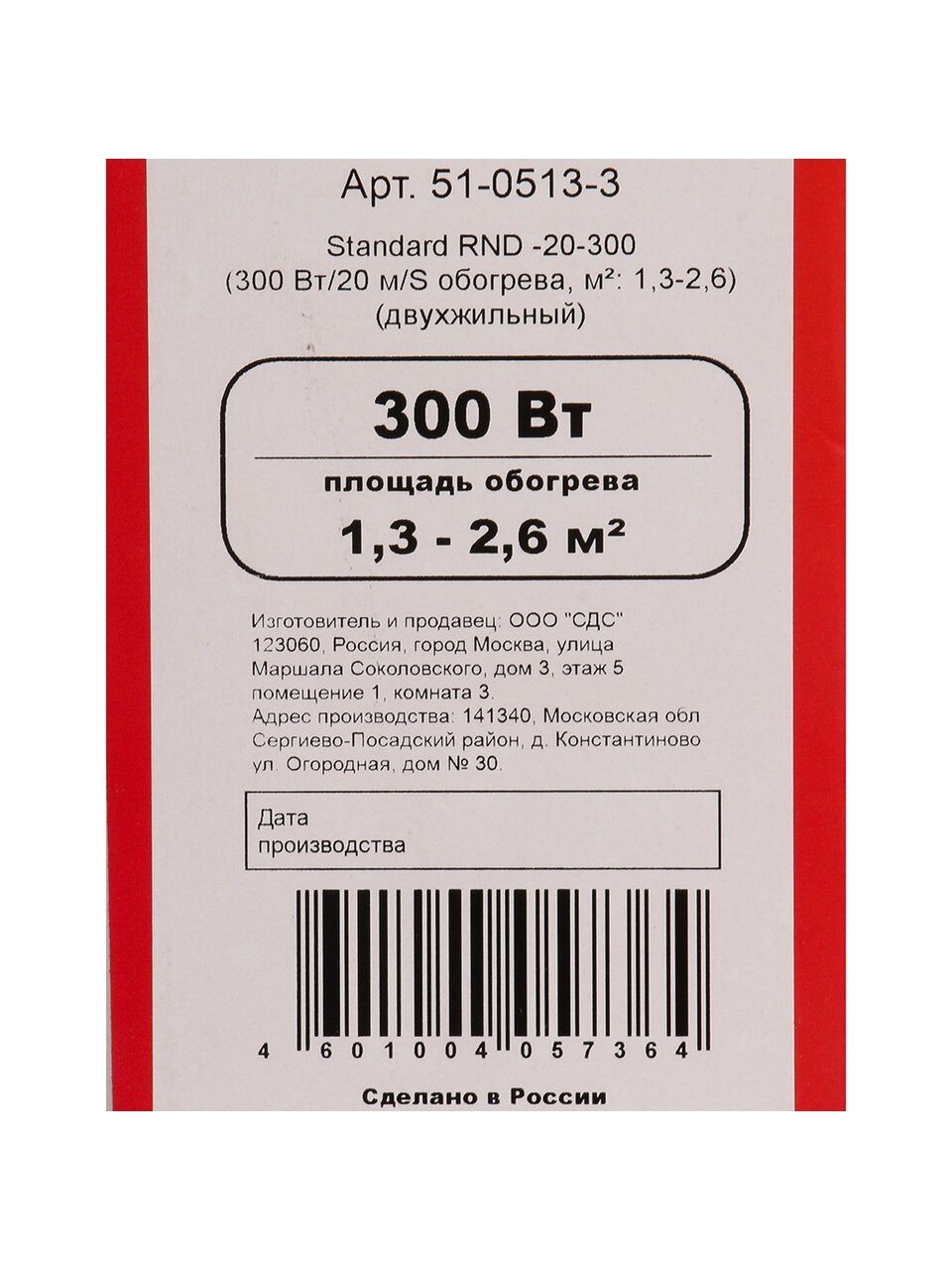 Тёплый пол Standard RND-20-300 Rexant: оптимальный обогрев 1,3–2,6 м², двухжильный кабель 20 м, IP67 — комфорт и безопасность для любого пола.