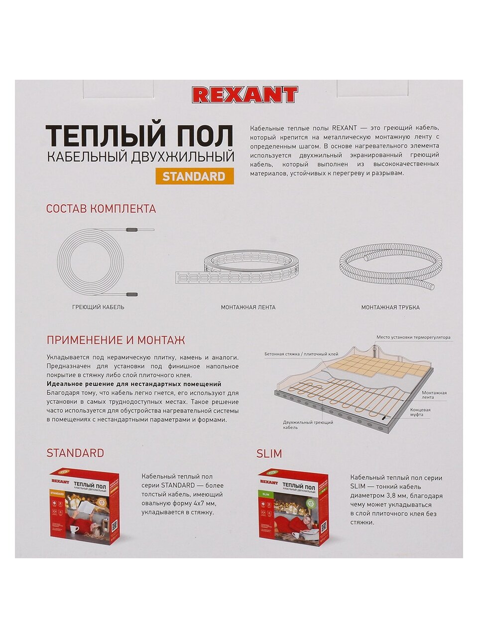 - Двухжильный кабель Rexant — минимальный уровень электромагнитных излучений, надёжная и безопасная система обогрева.