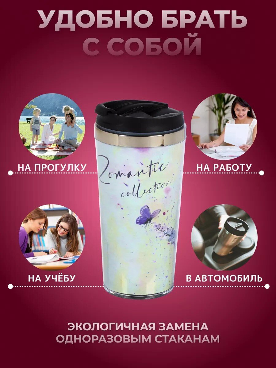Термокружка Daniks «Лаванда» 0.42 л — стильное решение для города и автомобиля: сохраняет температуру до 2 часов, подходит для подарка и ежедневного использования.