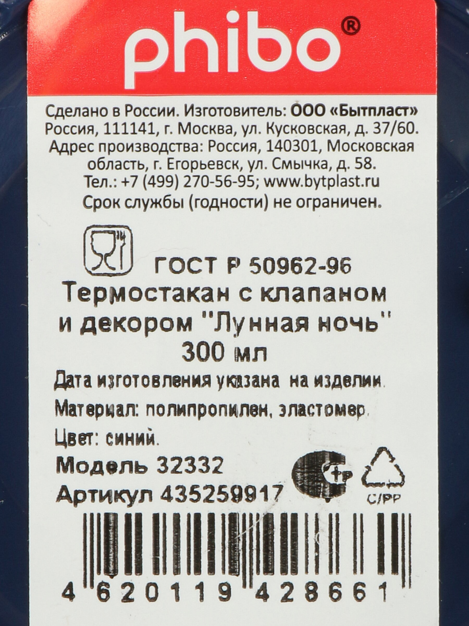 Вы можете приобрести «Термостакан пластик, 0.3 л, Бытпласт, Phibo Лунная ночь, с клапаном, с декором, синий, 435259917» и другие товары в нашем интернет-магазине в Армавире по низким ценам и с бесплатным самовывозом.