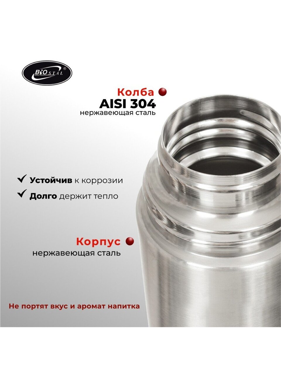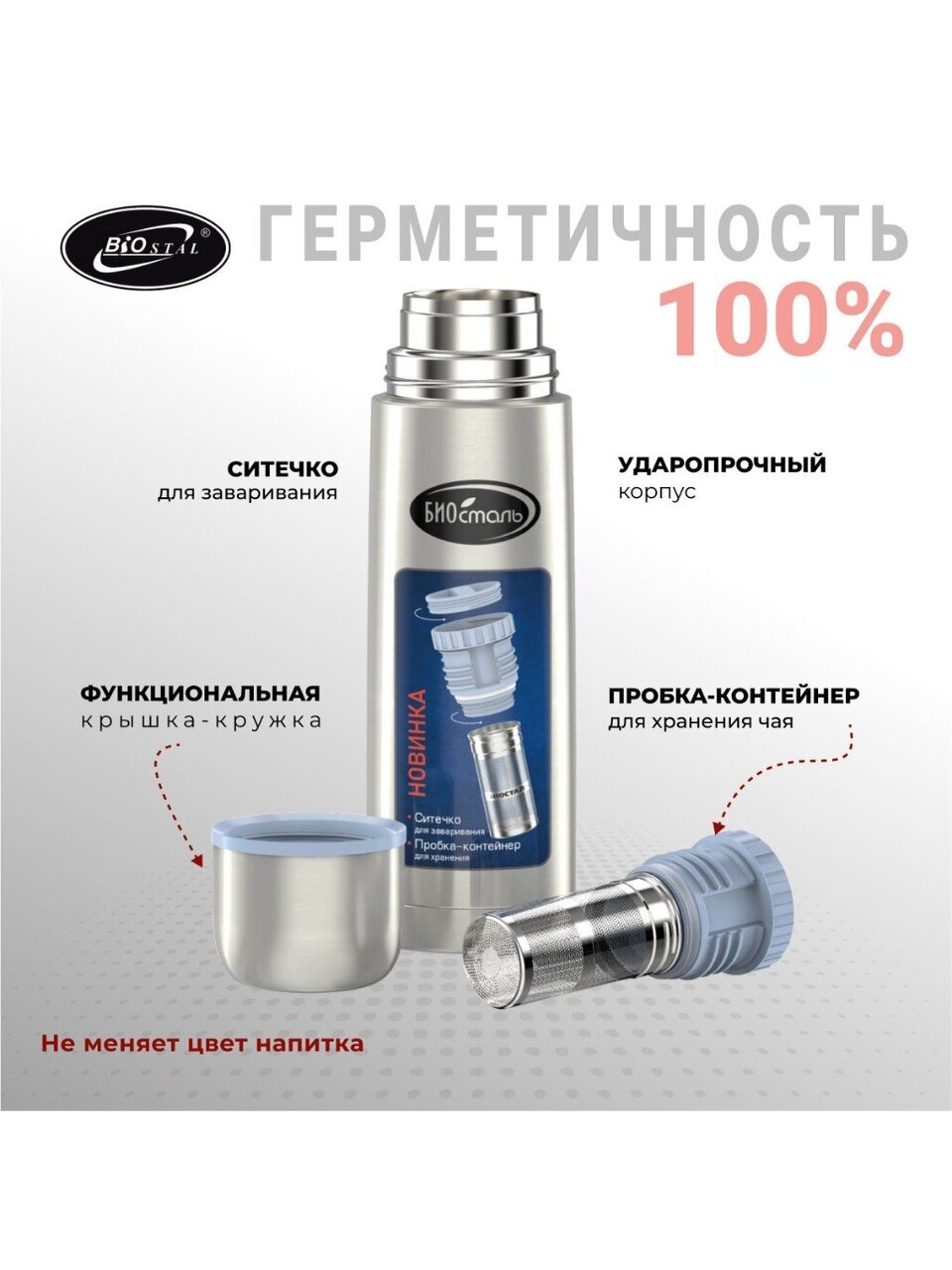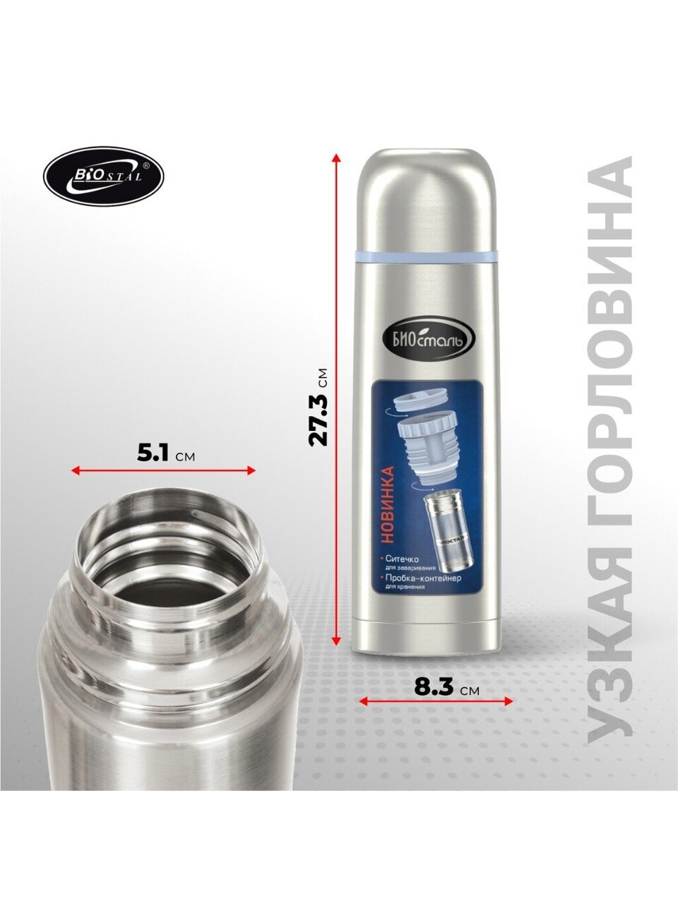 Термос Biostal 0.75 л из нержавеющей стали с узкой горловиной и ситечком: сохраняет тепло до 28 часов, идеально для города, дачи и путешествий.