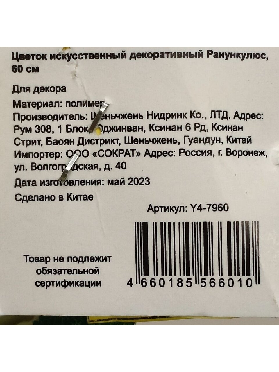 Вы можете приобрести «Цветок искусственный декоративный Ранункулюс, 60 см, белый, Y4-7960» и другие товары в нашем интернет-магазине в Орле по низким ценам и с бесплатным самовывозом.