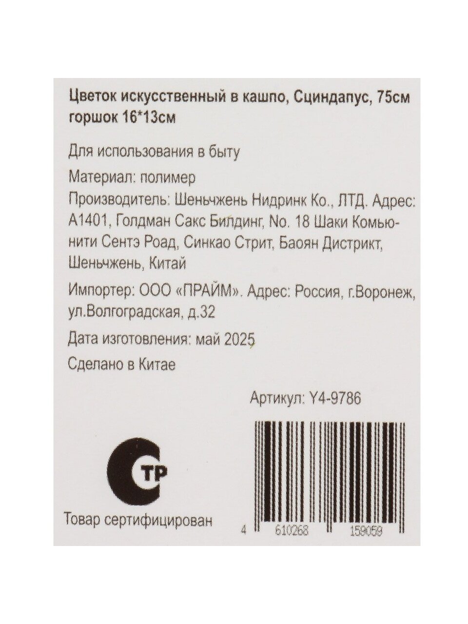 Вы можете приобрести «Цветок искусственный в кашпо Сциндапус, горшок 16х13 см, 75 см, Y4-9786» и другие товары в нашем интернет-магазине в Краснодаре по низким ценам и с бесплатным самовывозом.