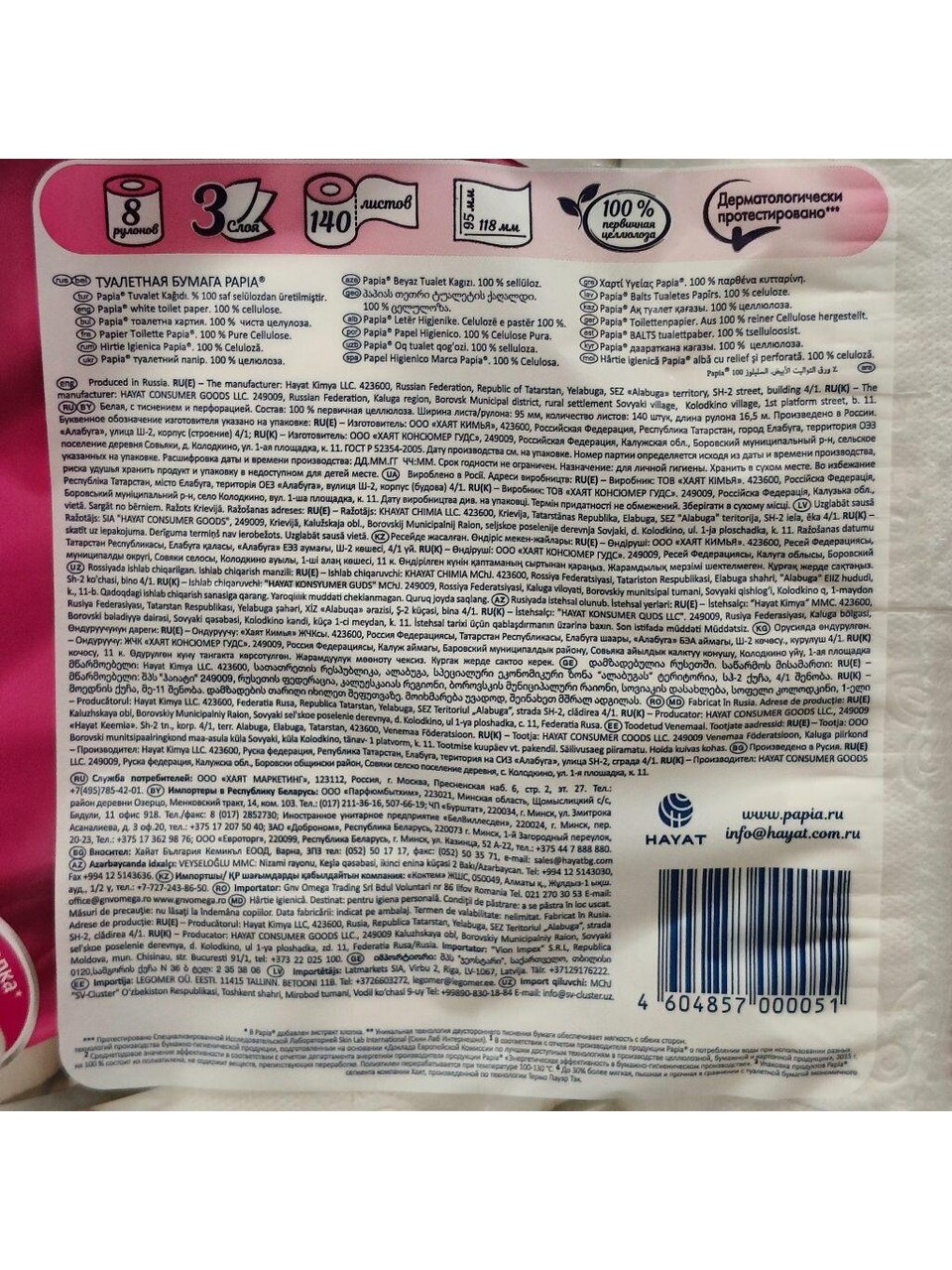 Вы можете приобрести «Туалетная бумага Papia, 3 слоя, 8 шт, 16.8 м, с втулкой, белая» и другие товары в нашем интернет-магазине в Смоленске по низким ценам и с бесплатным самовывозом.