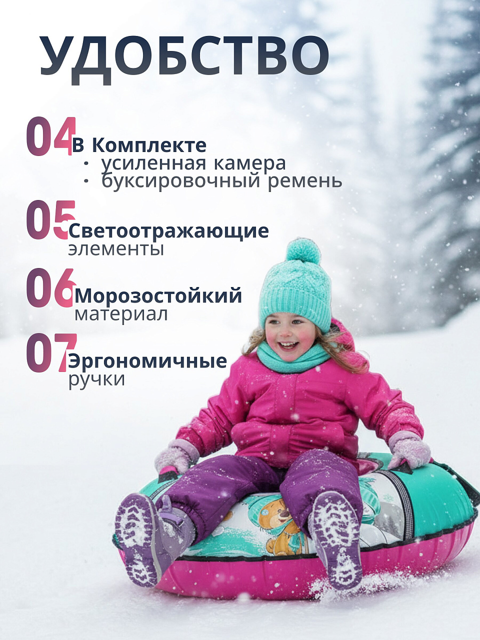 Вы можете приобрести «Санки-ватрушка Nika, С забавными медвежатами, 85 см, 90 кг, с буксировочным тросом, с ручками, 2 ручки, ТБ1КР-85/ЗМ» и другие товары в нашем интернет-магазине в Белгороде по низким ценам и с бесплатным самовывозом.