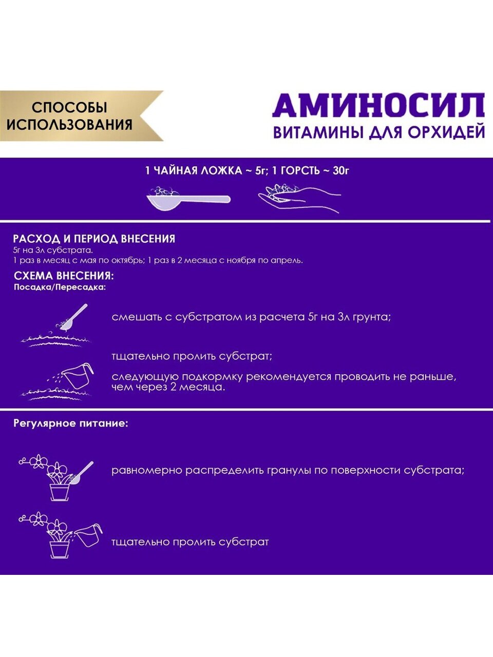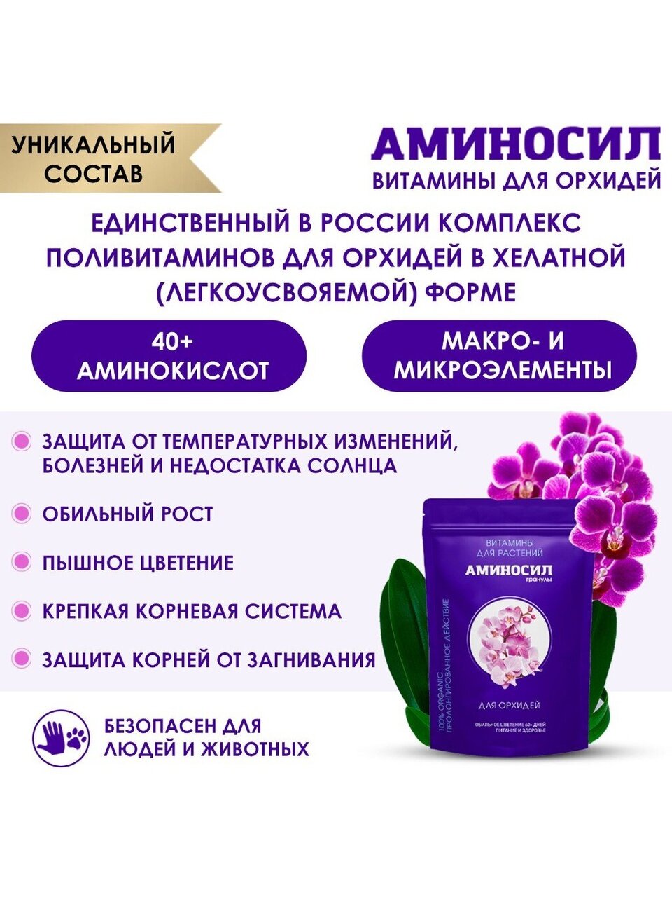 Откройте новые возможности для ваших орхидей с удобрением "Аминосил" в гранулах! Это органическое комплексное средство обеспечит стимуляцию корнеобразования и активный рост растений. Подходит для всех сезонов, гарантируя здоровье и красоту ваших орхидей круглый год.