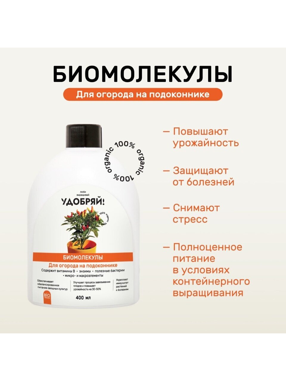Откройте для себя мир здоровых и пышных растений с удобрением Биомолекулы от бренда Удобряй. Это идеальное решение для тех, кто хочет создать собственный огород на подоконнике и наслаждаться свежими овощами и зеленью круглый год. Продукт разработан специально для поддержания и улучшения роста ваших растений, а также для их защиты от болезней.