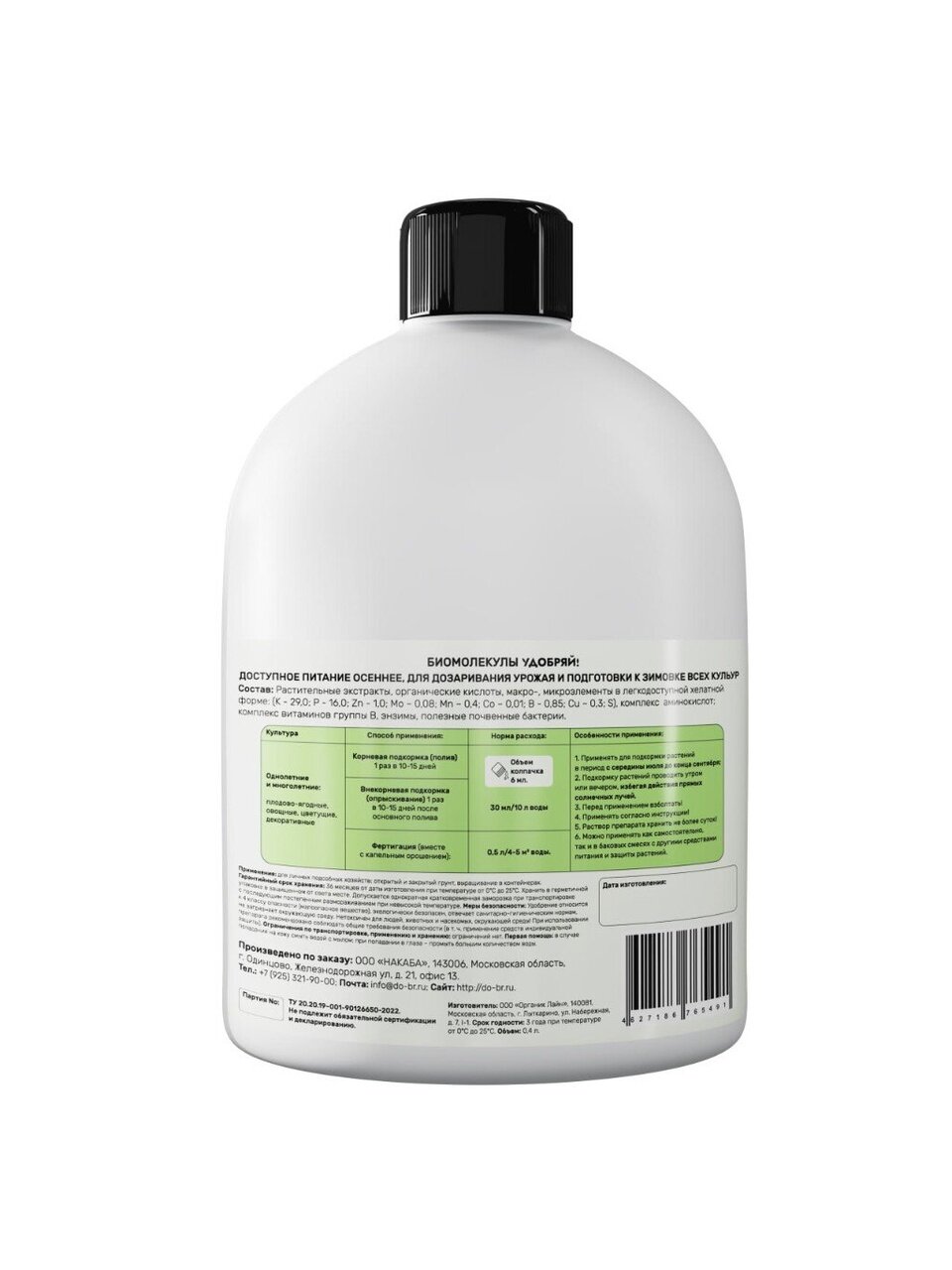 Удобрение Биомолекулы 400 мл — комплексный уход для всех культур осенью: защита, стимуляция, повышение урожайности. Экономьте время и деньги!