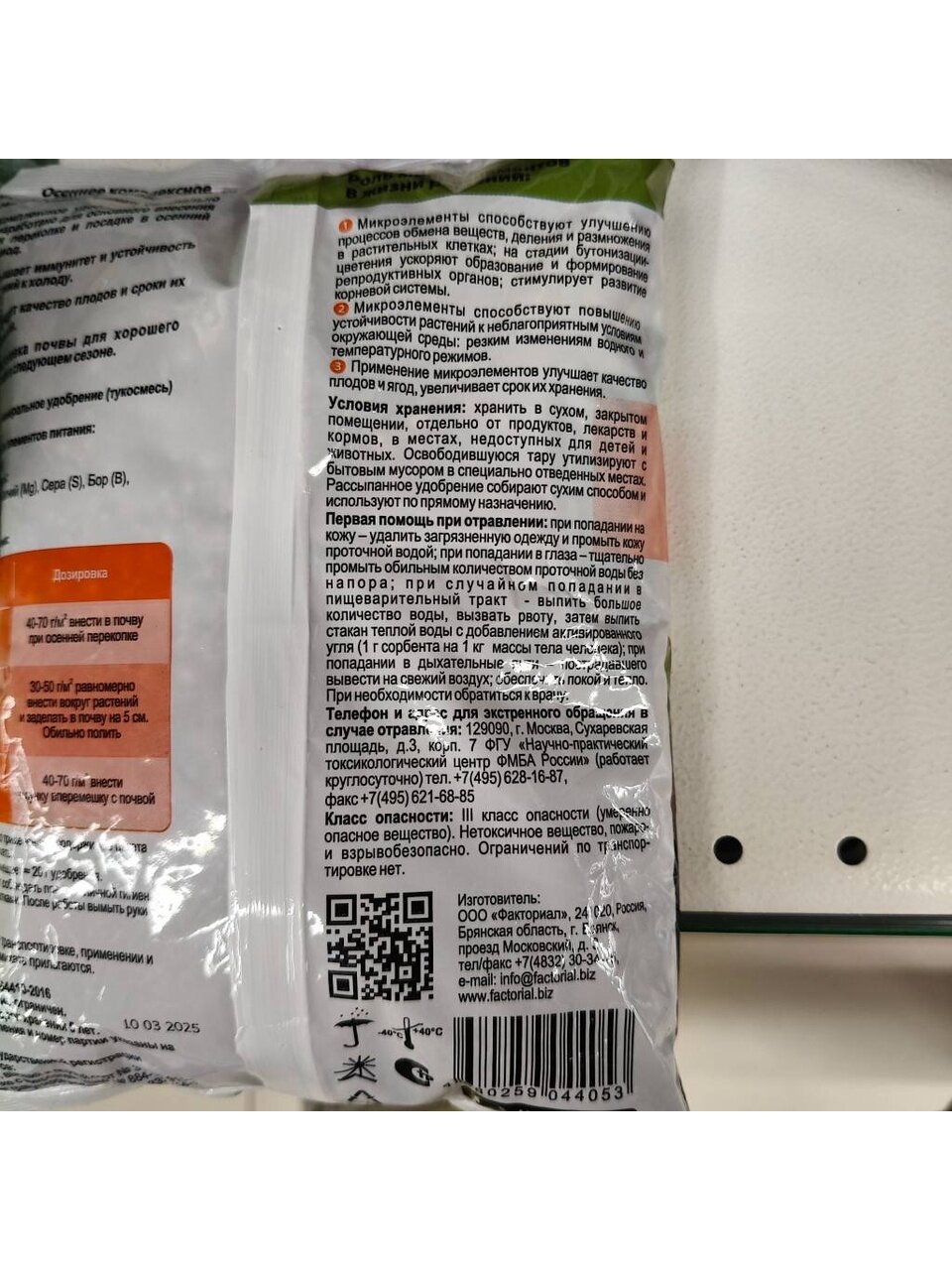 - Массовая доля элементов питания: азот - 4%, фосфор - 10%, калий - 30%.