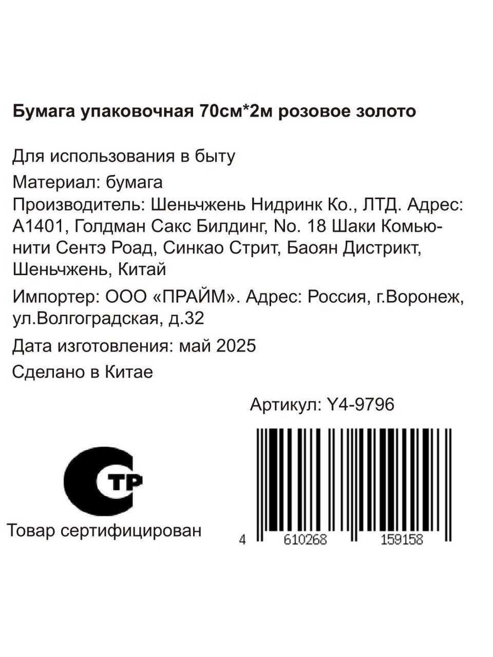 Вы можете приобрести «Бумага упаковочная 200х70 см, розовое золото, Y4-9796» и другие товары в нашем интернет-магазине в Санкт-Петербургe по низким ценам и с бесплатным самовывозом.