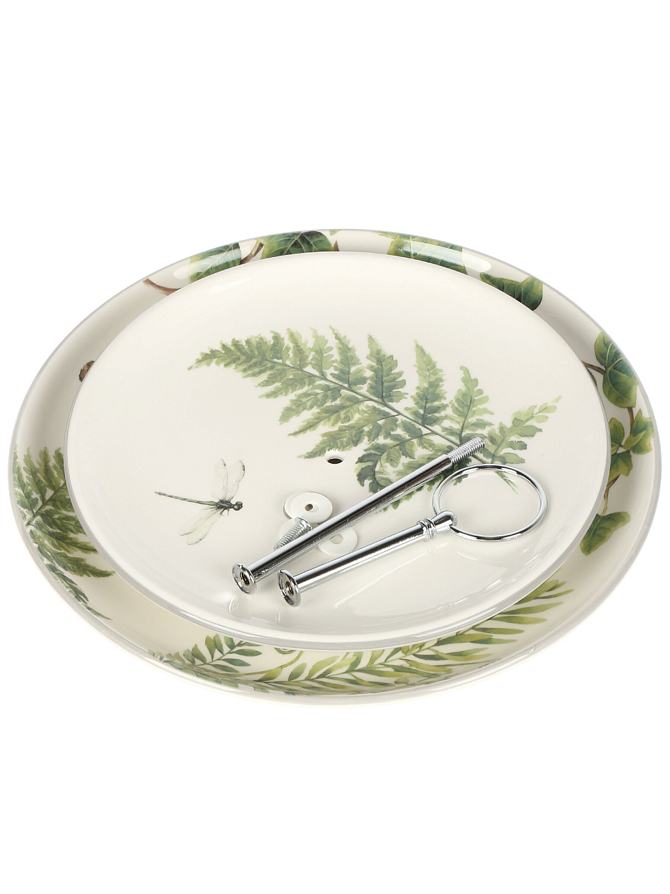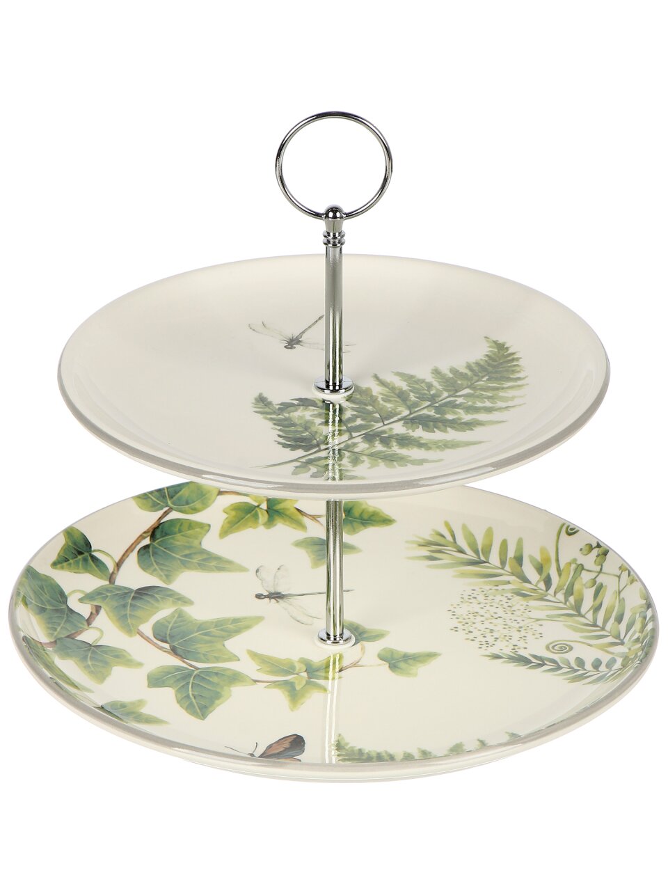 Ваза для фруктов Prima Collection «Дикий папоротник» — стильное решение для сервировки: 2 керамических яруса, акцент на эко-дизайн и выгодное хранение.