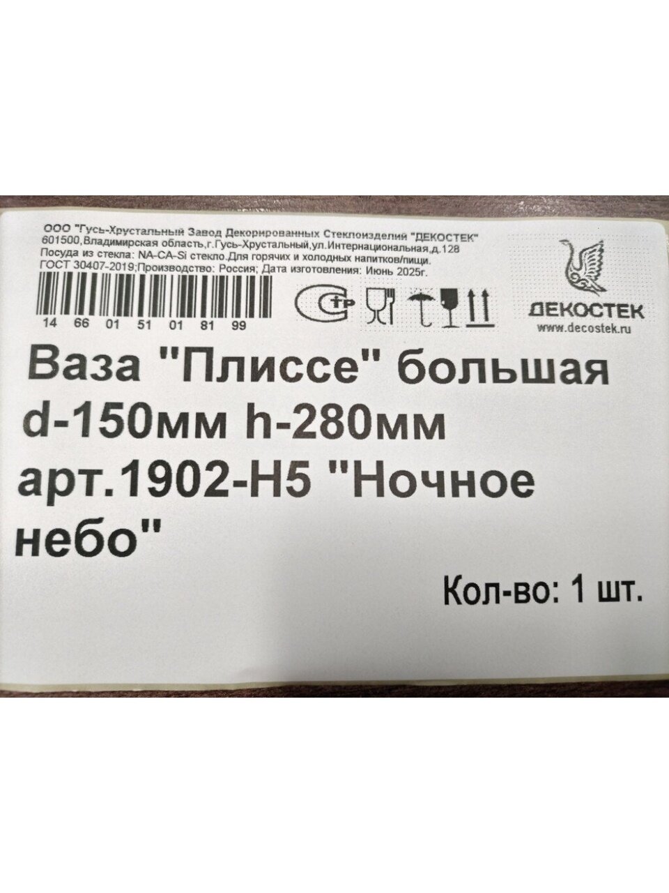Вы можете приобрести «Ваза стекло, настольная, 28х15 см, Декостек, Плиссе Ночное небо, 1902-Н5» и другие товары в нашем интернет-магазине в Брянске по низким ценам и с бесплатным самовывозом.