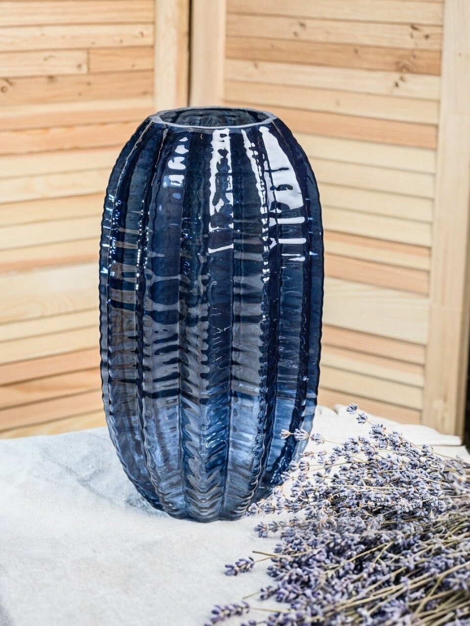 Ваза стекло, настольная, 15x28 см, Декостек, Плиссе Ночное небо, 1902-Н5 – стильное решение для современного интерьера, которое станет акцентом в любом помещении. Элегантная форма с овальными линиями и глубокий синий цвет создают атмосферу уюта и гармонии. Дизайн коллекции Плиссе Ночное небо воплощает изысканность и лаконичность, подчеркивая индивидуальность пространства. Прозрачная структура стекла позволяет выгодно подчеркнуть красоту живых цветов, делая композицию еще более выразительной.