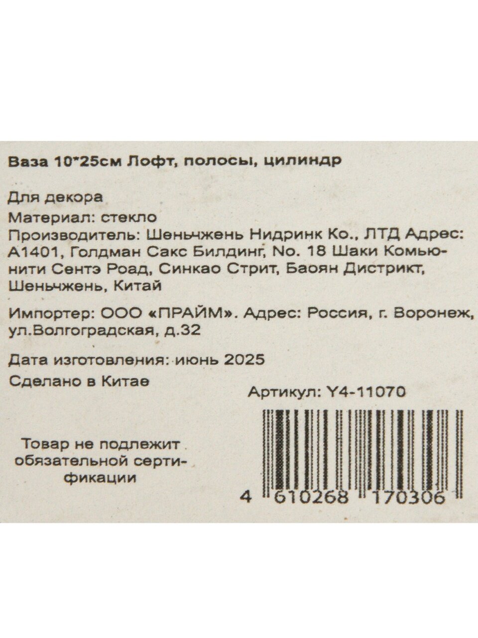 Ваза стекло настольная Лофт 10х26 см — это выбор для тех, кто ценит сочетание практичности и эстетики. Серый оттенок и полосатый декор создают эффектный акцент на столе, комоде или полке, а цилиндрическая форма с широким горлом облегчает размещение живых цветов любого размера. Благодаря прозрачности стекла и устойчивой подставке, ваза подходит для композиций из свежих и сухих растений, а также декоративных веток.