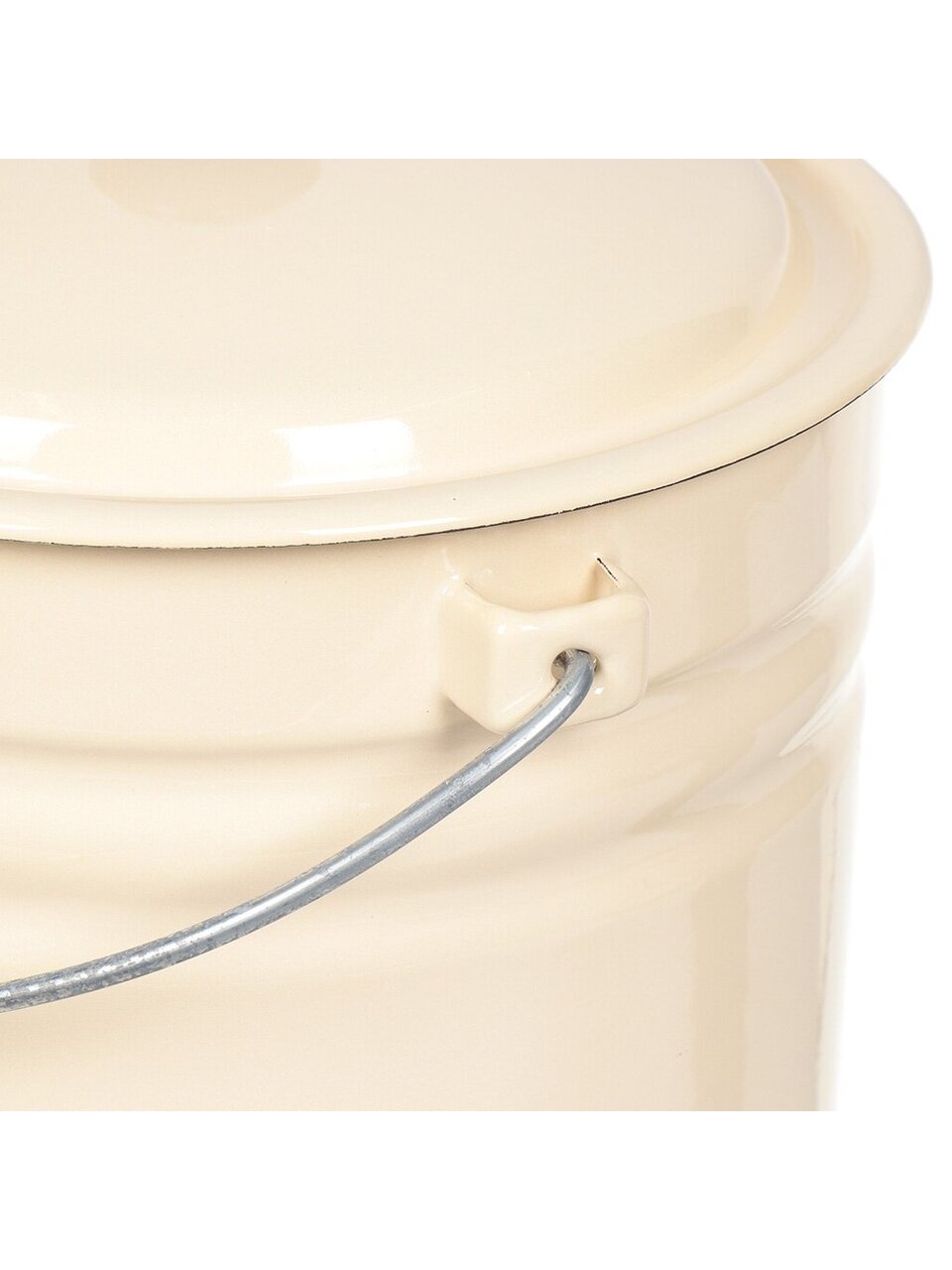 Эмалированное покрытие обеспечивает надежную защиту от коррозии, продлевая срок службы изделия и облегчая уход за поверхностью. Сталь отличается прочностью и устойчивостью к механическим повреждениям, что особенно важно для ежедневного использования. Крышка в комплекте позволяет удобно хранить содержимое, предотвращая попадание пыли и посторонних запахов. Ручка с накладкой обеспечивает комфорт при переноске даже наполненного ведра, а железная конструкция ручки гарантирует дополнительную прочность.
