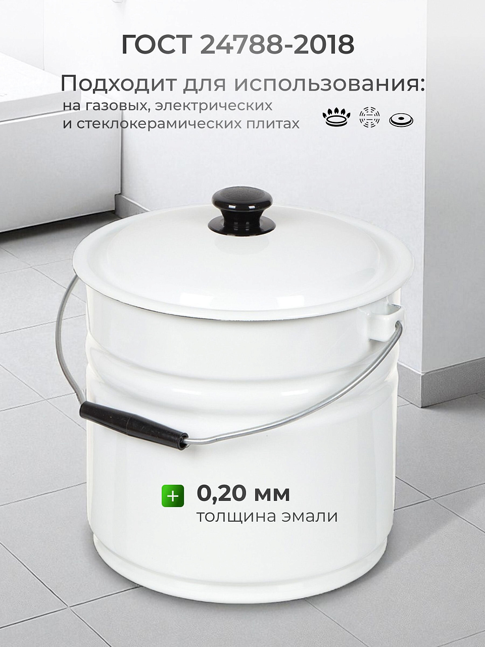 Продукция изготовлена в соответствии с ГОСТ 24788-2018, толщина эмали не менее 0.20 мм.