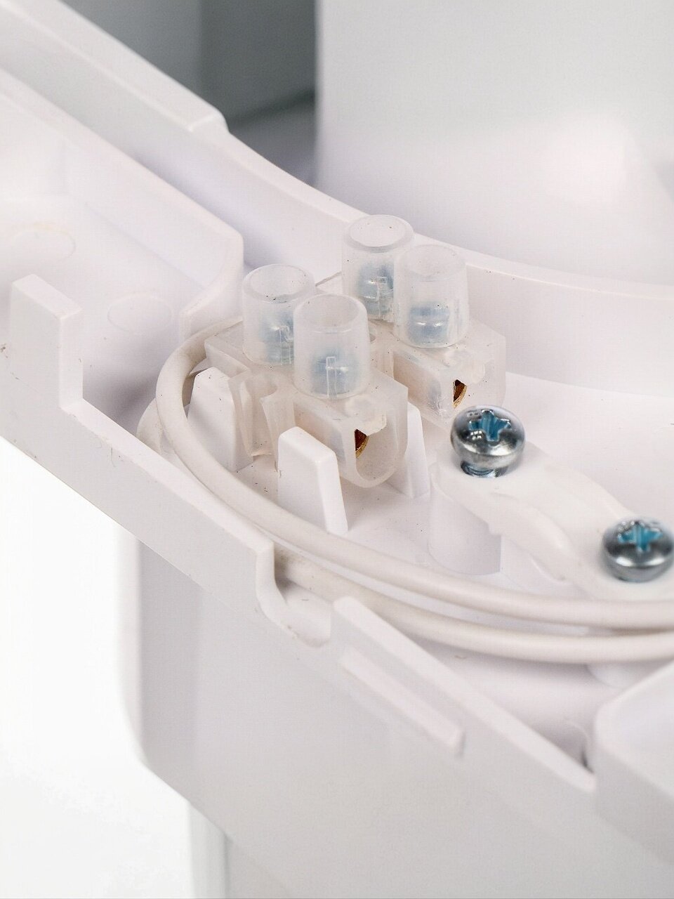 Вентилятор снабжен обратным клапаном. Обратный клапан – это один из функциональных узлов, который расположен в конце вентилятора, предназначен пропускать воздух только в одном направлении. Таким образом, воздух удаляется из помещения, а посторонние запахи не проникают вовнутрь.