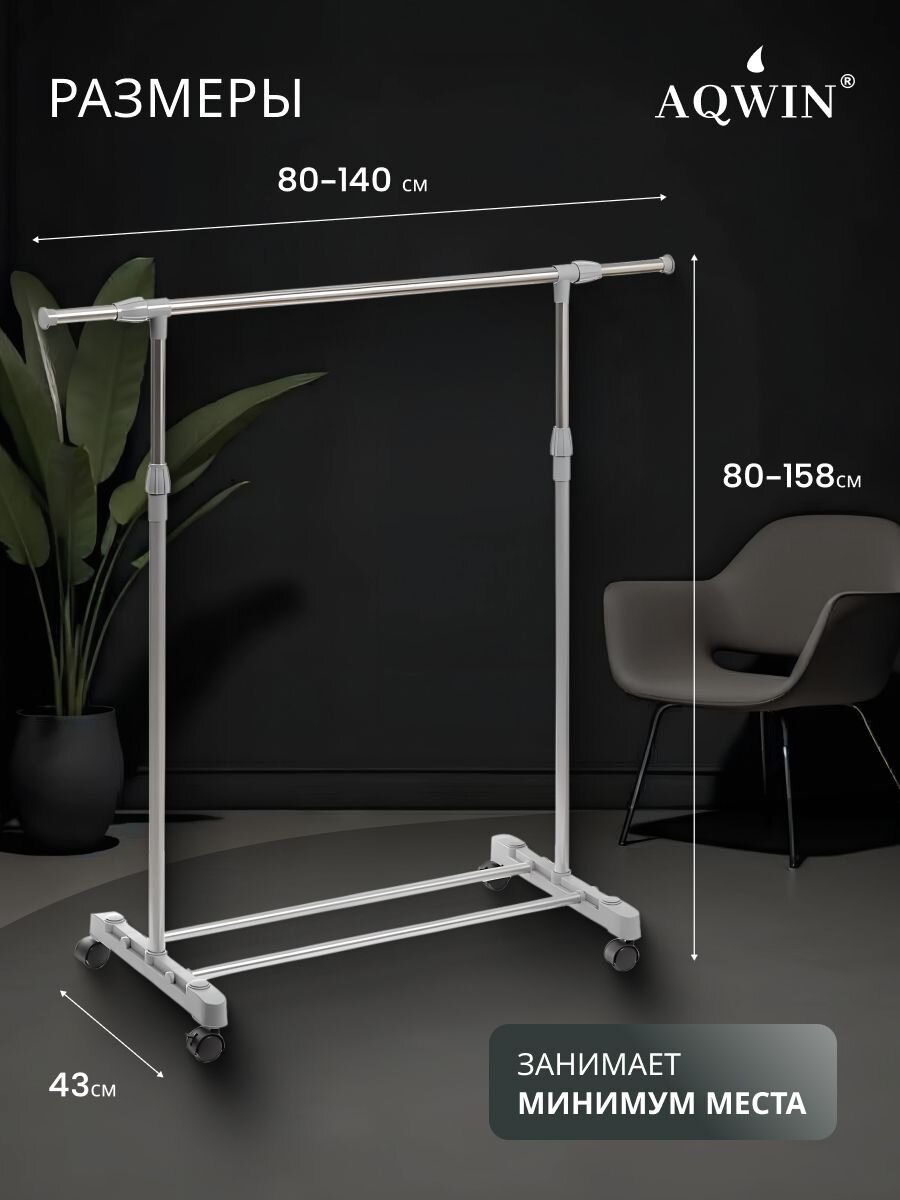 Напольная вешалка Aqwin 140х43х158 см: выдерживает до 40 кг, мобильна, не занимает много места — идеальный выбор для хранения одежды дома и на даче.