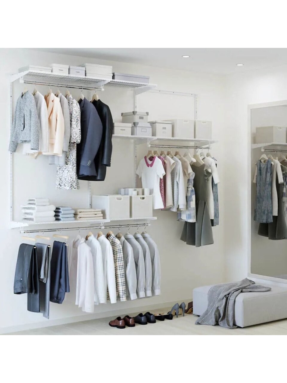 Гардеробная система – удобное, функциональное и мобильное решение для хранения вещей в различных помещениях. Внешне привлекательная и надежная система прекрасно подойдет для любого интерьера, поможет навести порядок и максимально эффективно использовать пространство, учитывая ваши индивидуальные желания.