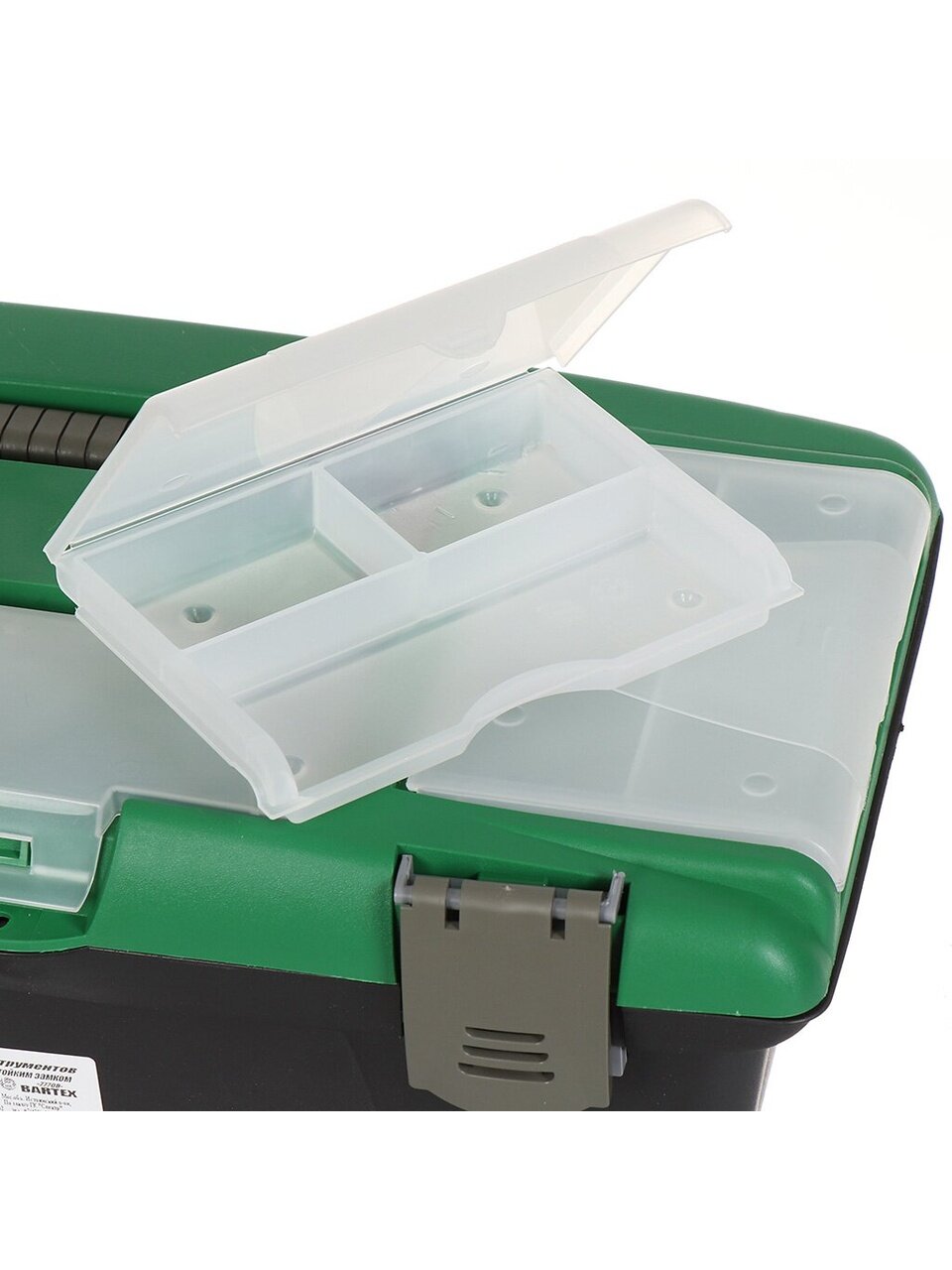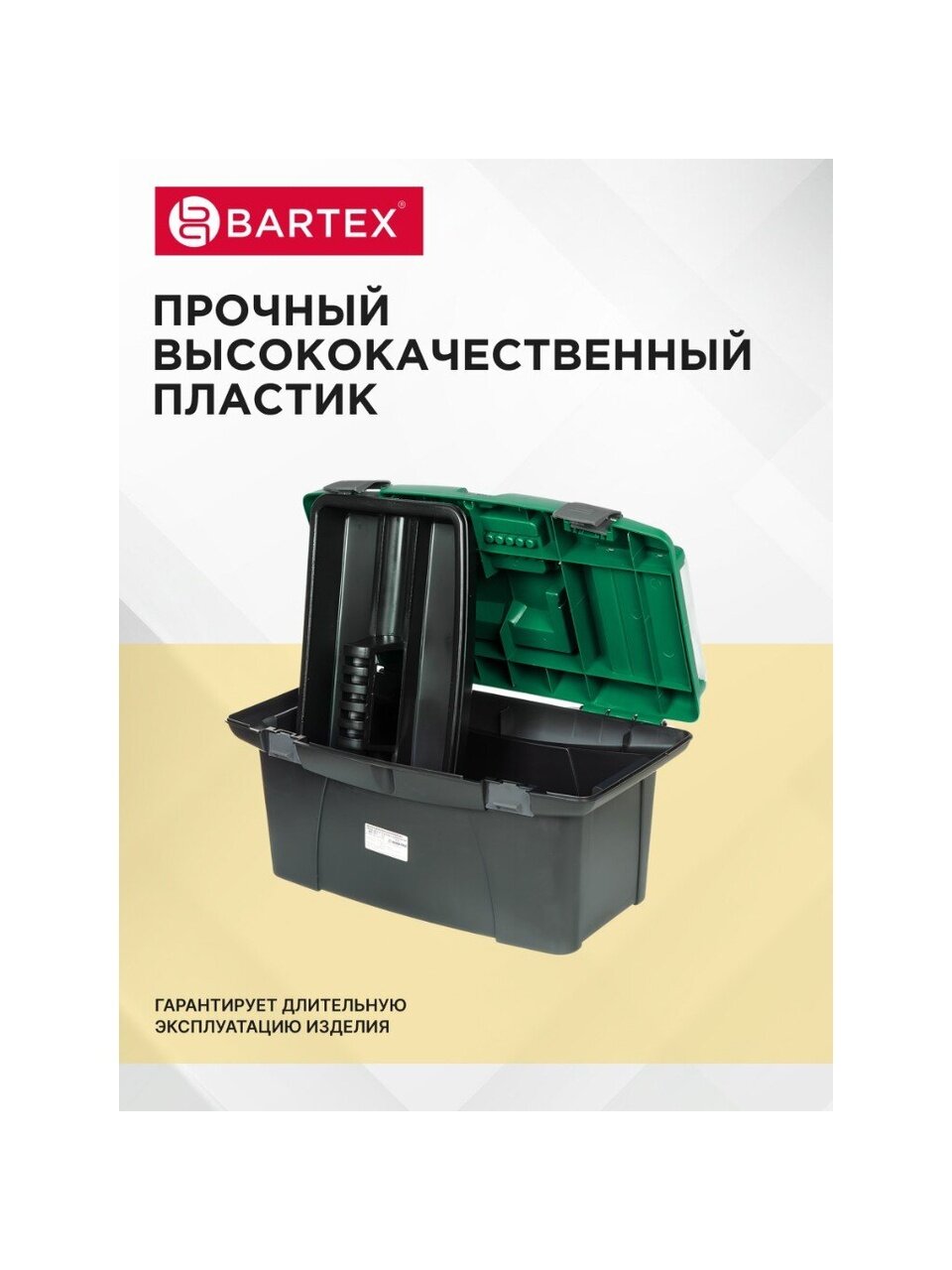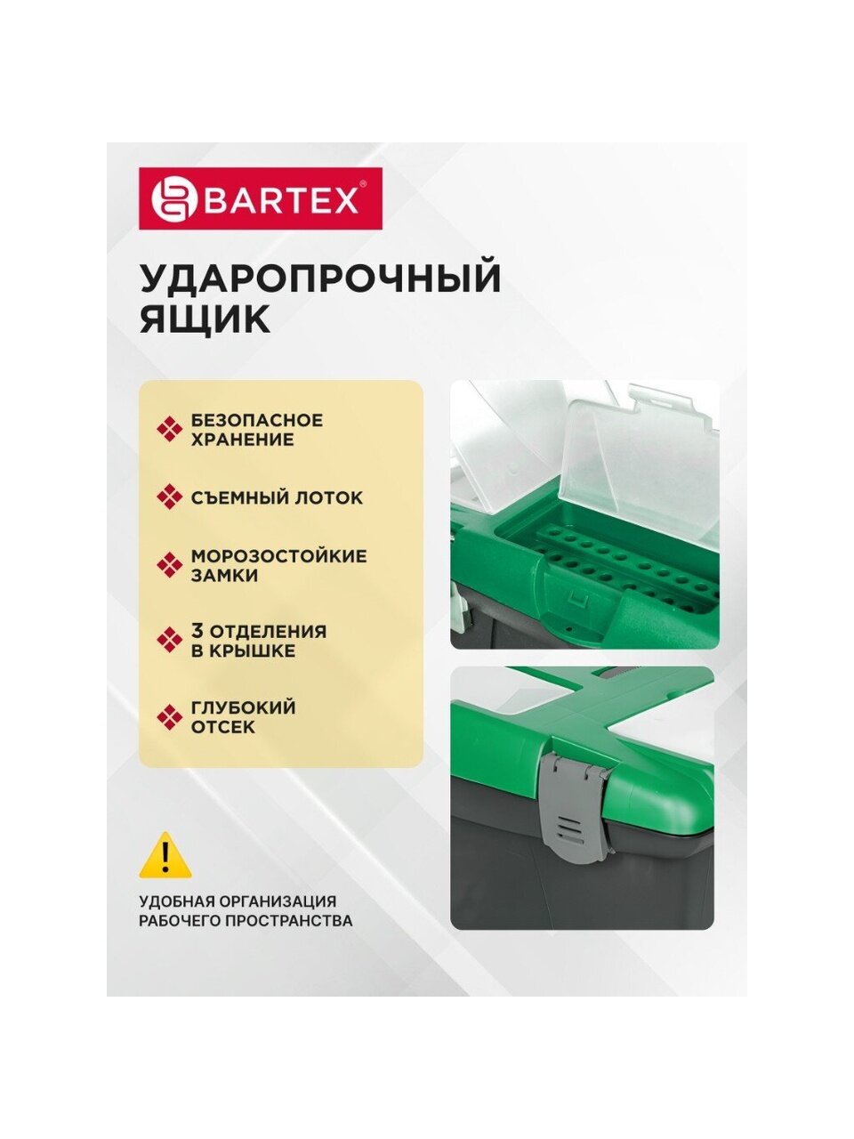 Ящик для инструментов – надежный друг и помощник любого мастера. Модель Bartex 27802201 позволит грамотно организовать рабочее пространство и держать все нужные инструменты под рукой. Изделие выполнено из прочного пластика. В комплект входит съемный лоток, установленный на глубокое внутреннее отделение. Ящик закрывается при помощи морозостойких замков.
