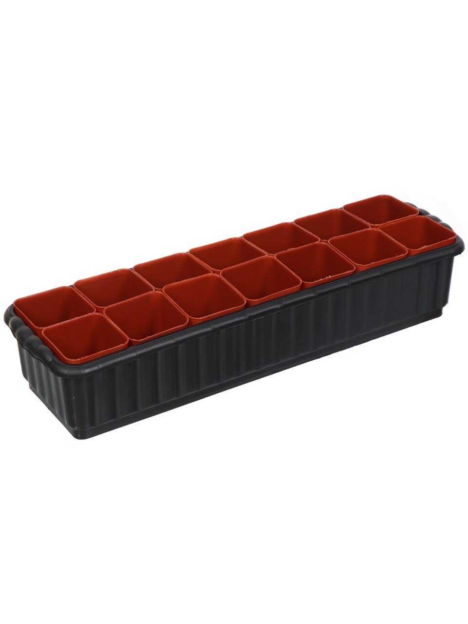 Рассадник для выращивания цветочных и садовых культур. В набор входят - ящик балконный 590*190*120мм, дренажная решетка для оттока влаги, 14 стаканчиков*400 мл .