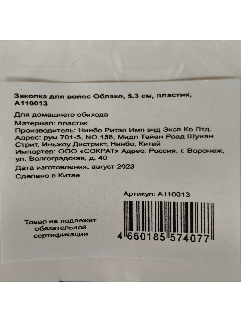 Вы можете приобрести «Заколка для волос Облако, 5.3 см, 4 шт, пластик, A110013» и другие товары в нашем интернет-магазине в Казани по низким ценам и с бесплатным самовывозом.