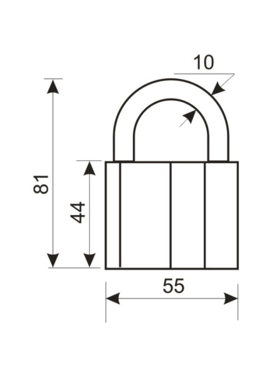 Серия "Русский стиль". Замок навесной. Материал корпуса - алюминиевый сплав, полимерное покрытие. Ширина основания корпуса - 55мм, диаметр дужки 10мм. Дисковый механизм секрета, 3 ключа с двойной нарезкой секрета.