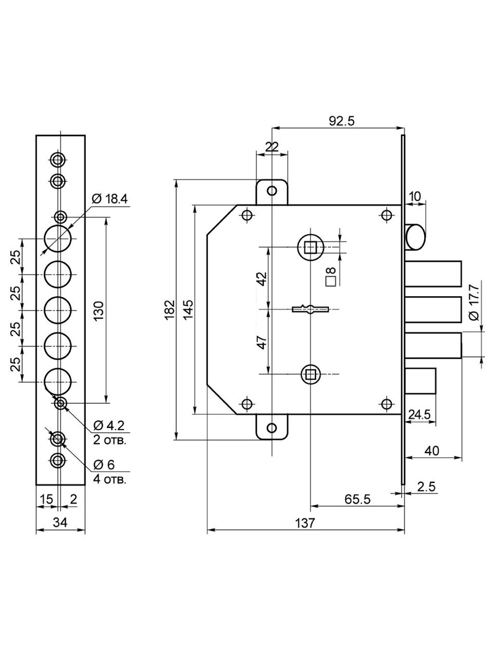 - Размер ригеля: 17,7 мм