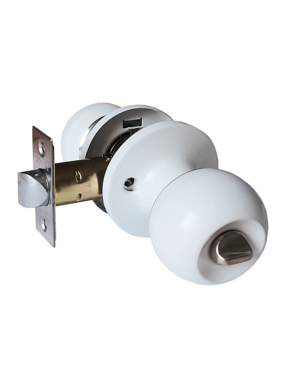 - Идеальна для установки на двери туалетов и ванных, так как позволяет запирать дверь с внутренней стороны при помощи вертушки, которая блокирует поворот кноба.