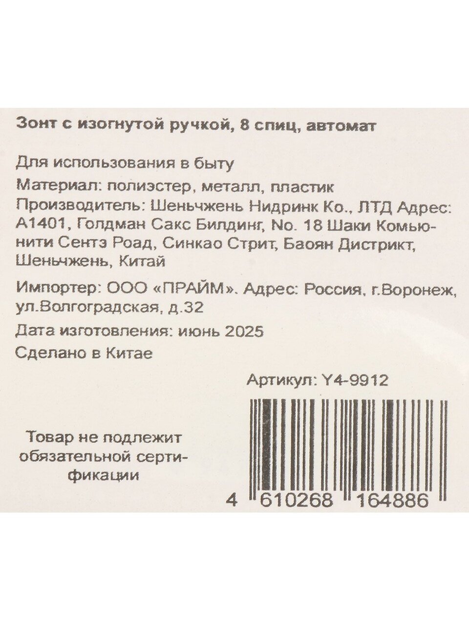 Вы можете приобрести «Зонт унисекс, автомат, 8 спиц, полиэстер, изогнутая ручка, черный, Y4-9912» и другие товары в нашем интернет-магазине в Астрахани по низким ценам и с бесплатным самовывозом.