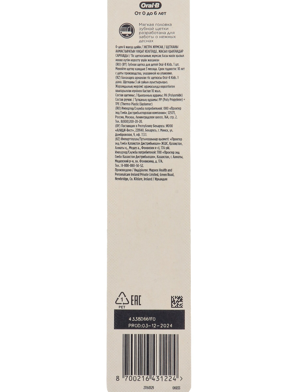 Зубная щетка Oral-B Kids 35: экстра мягкая забота о первых зубках детей от 0 до 6 лет. Безопасно, удобно, рекомендовано стоматологами.